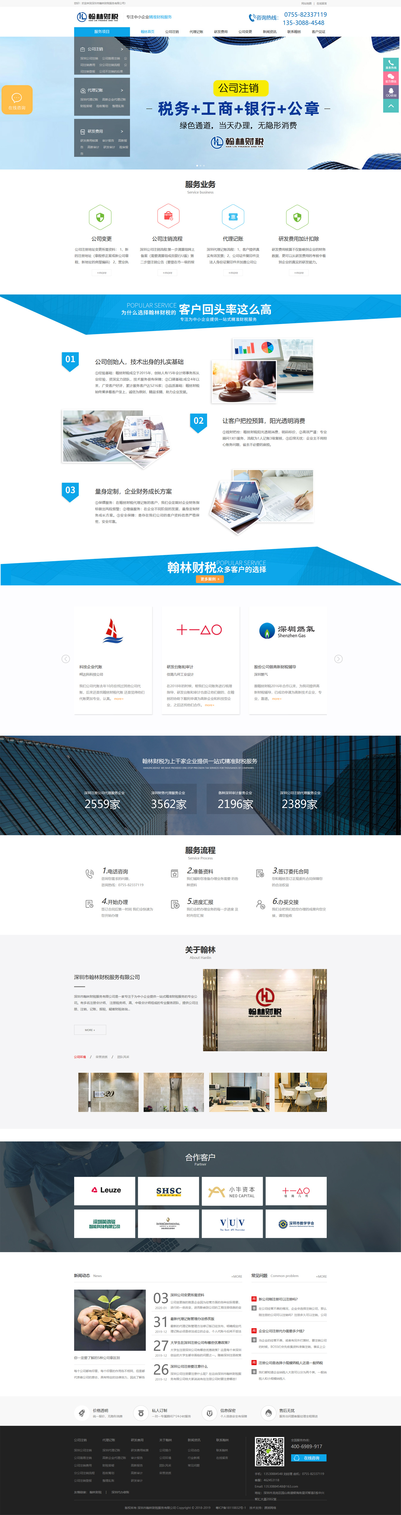結(jié)合翰林財稅的logo元素及財稅行業(yè)的專業(yè)屬性,將網(wǎng)站主色調(diào)定位藍(lán)色,將灰白色作為輔助色,使網(wǎng)站整體保持著簡潔明了的風(fēng)格