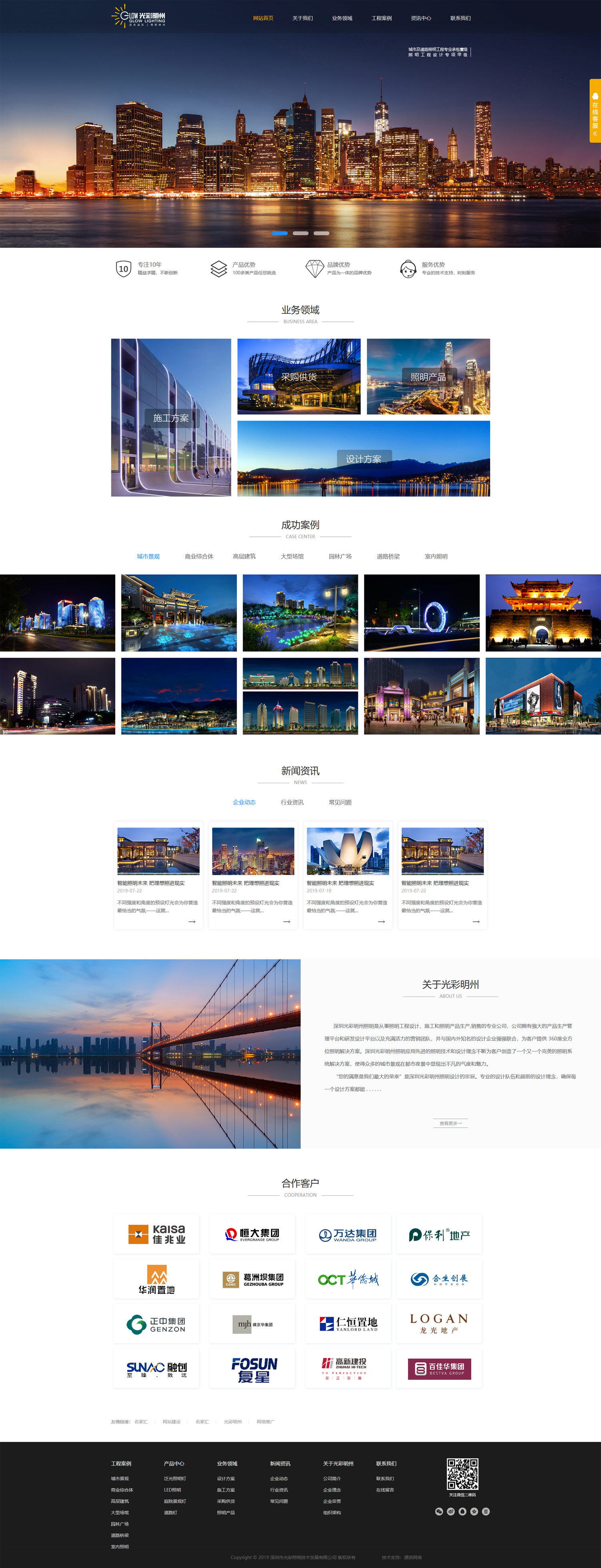 結合光彩照明企業(yè)VI元素及定位,將網(wǎng)站設計為藍色主題色,凸顯科技環(huán)保的運營理念和產(chǎn)品定位。
