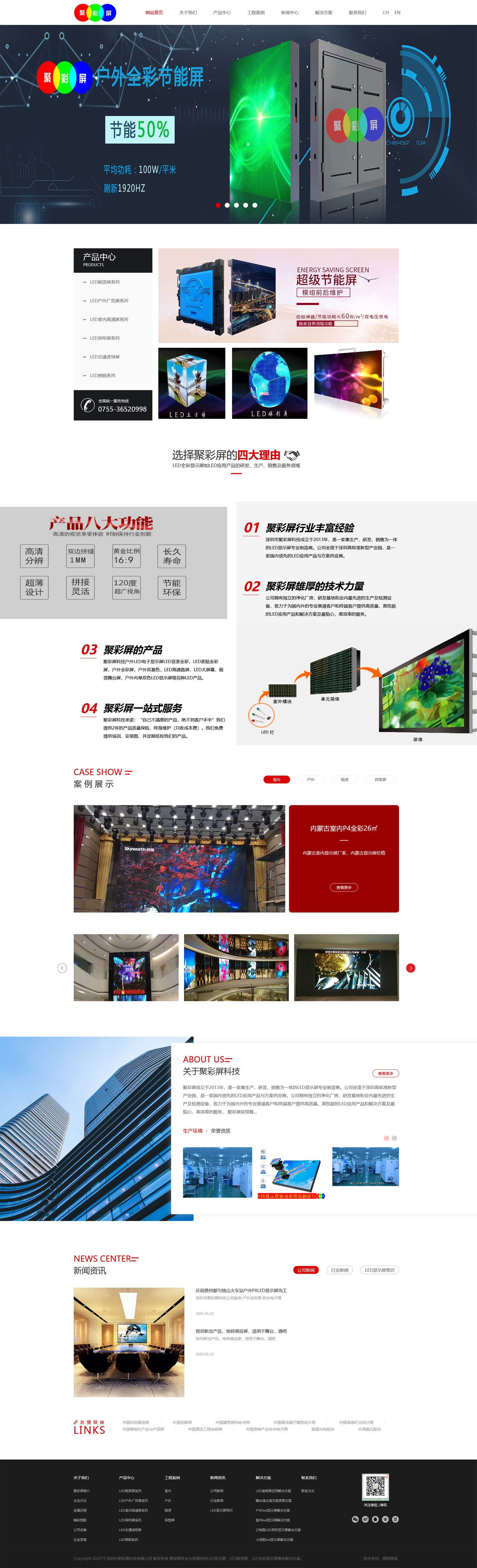 結(jié)合聚彩屏logo元素及l(fā)ed顯示屏產(chǎn)品特征,將網(wǎng)站主色調(diào)定位深紅色,通過黑色來襯托主題色;