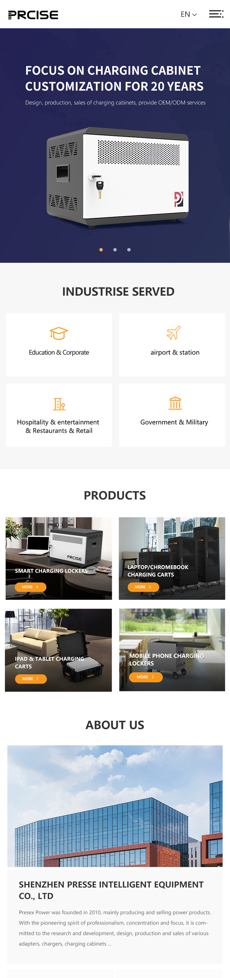 項(xiàng)目背景Precise于2010年2月在香港成立,2017年在深圳建廠。通過ISO9001認(rèn)證,多年來,我們一直是為筆記本電腦和平板電腦充電柜提供創(chuàng)新解決方案。 產(chǎn)品主要包括交流智能充電柜、USB-C充電柜、USB便攜式充電盒、智能充電柜等。