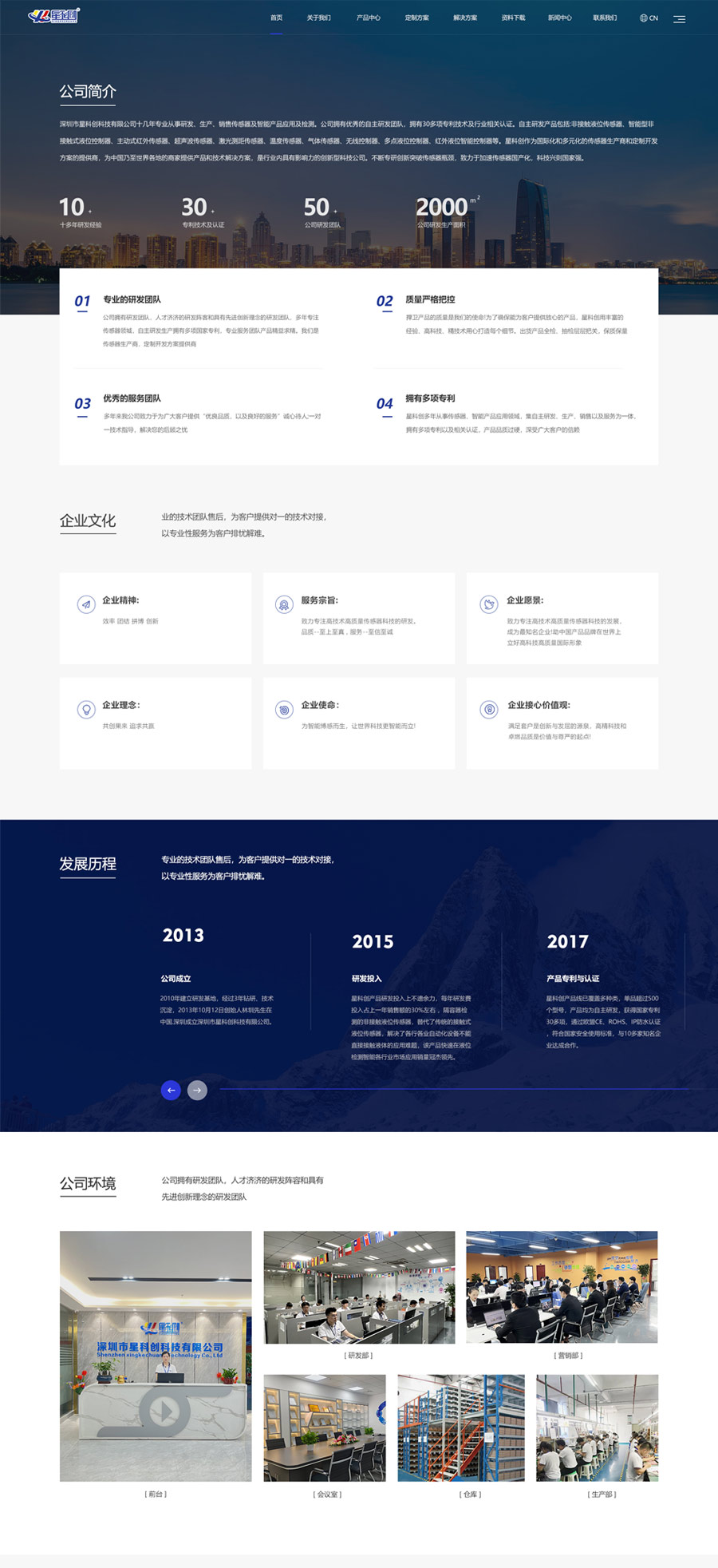 基于星科創(chuàng)科技企業(yè)品牌屬性及產(chǎn)品特性采用科技藍(lán)為網(wǎng)站色調(diào),其它色為輔助色,既增加了產(chǎn)品靈活度也符合傳感器網(wǎng)站建設(shè)品牌特性,整站細(xì)節(jié)滿滿大氣厚重且不失視覺沖擊力。