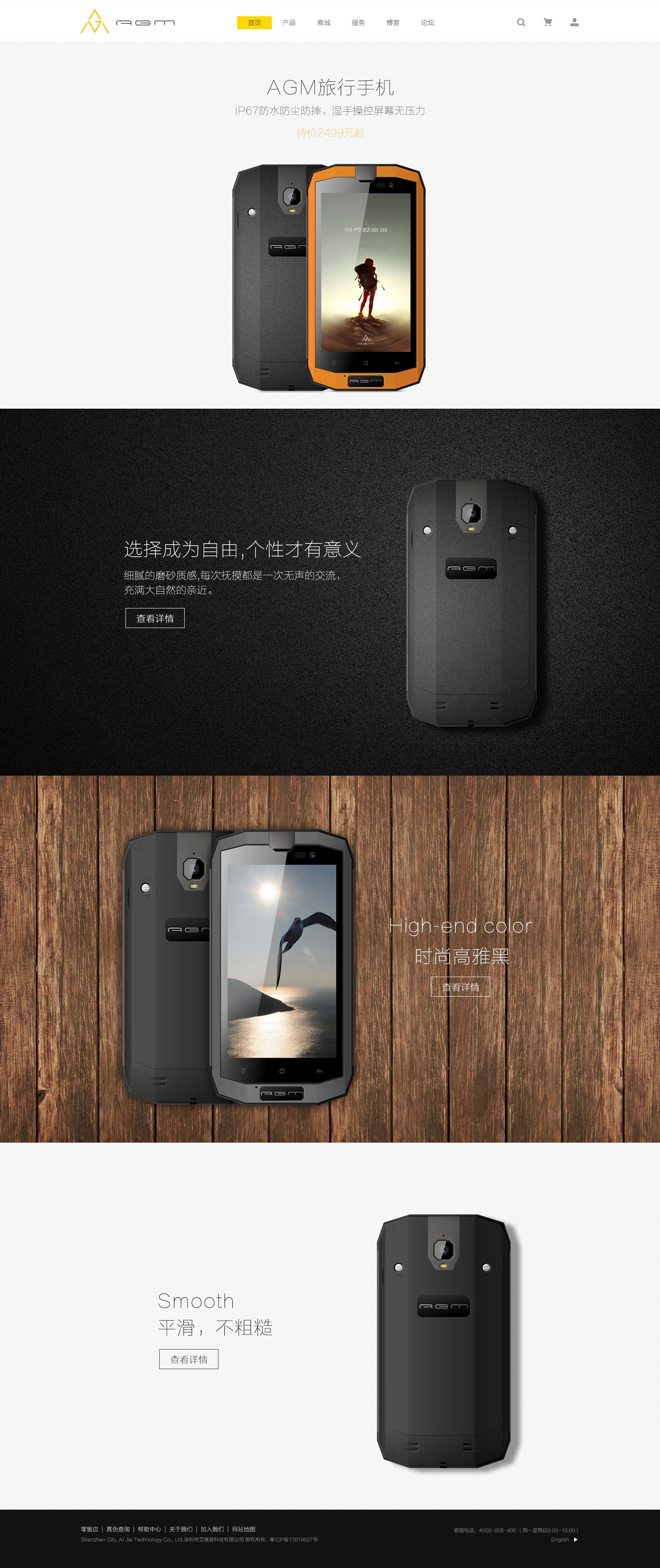結合艾捷莫手機的品牌元素及產品屬性,將網站主色調定位橙色,通過深灰色背景的襯托彰顯品牌的與眾不同。