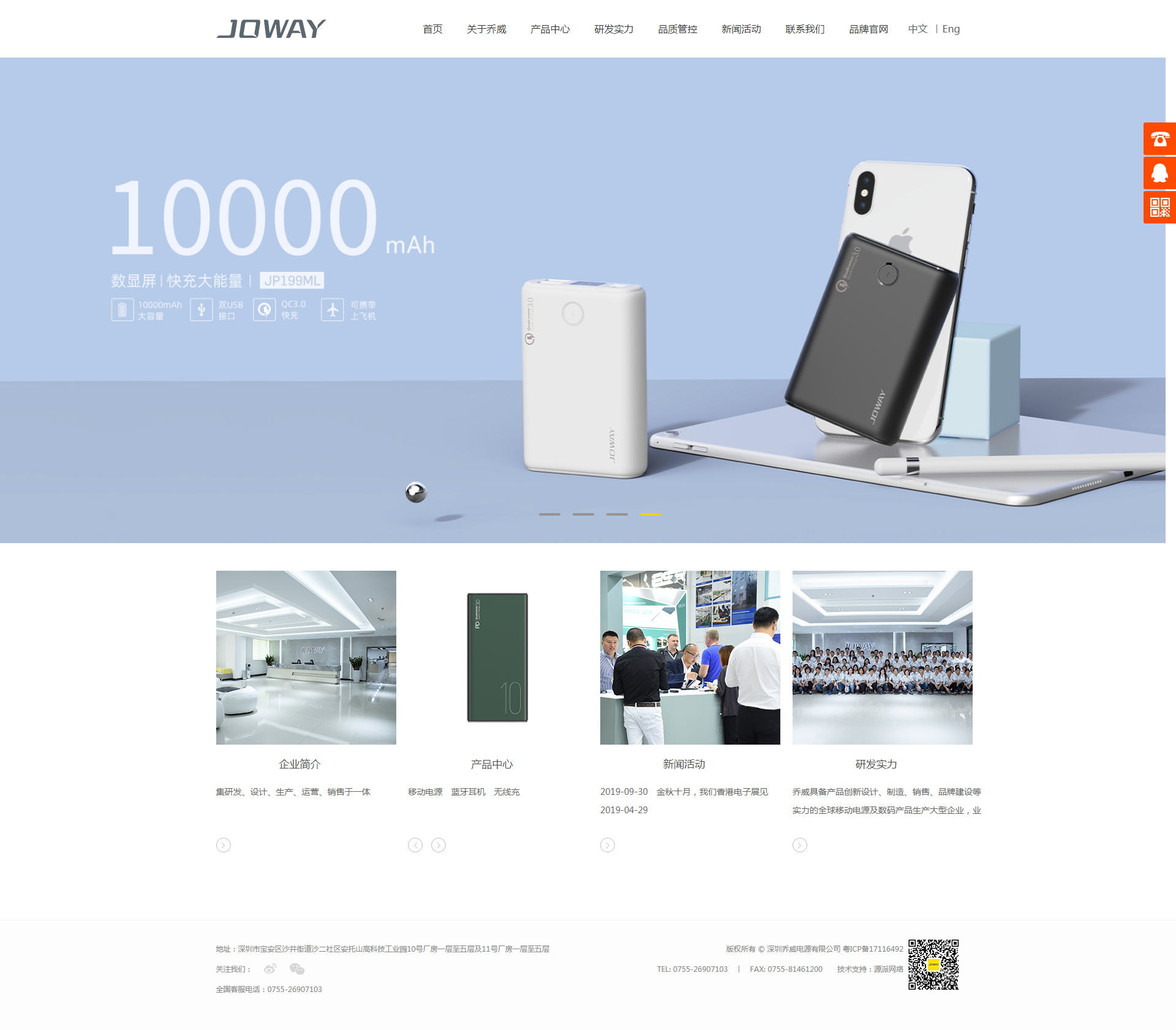 項目背景深圳市喬威電源有限公司以匠工精神及技術(shù)實力出移動電源、藍(lán)牙耳機、藍(lán)牙音響、電源適配器等數(shù)碼3C產(chǎn)品現(xiàn)擁有一千多名員工 。網(wǎng)站定位以塑造企業(yè)形象及產(chǎn)品宣導(dǎo)為導(dǎo)向。